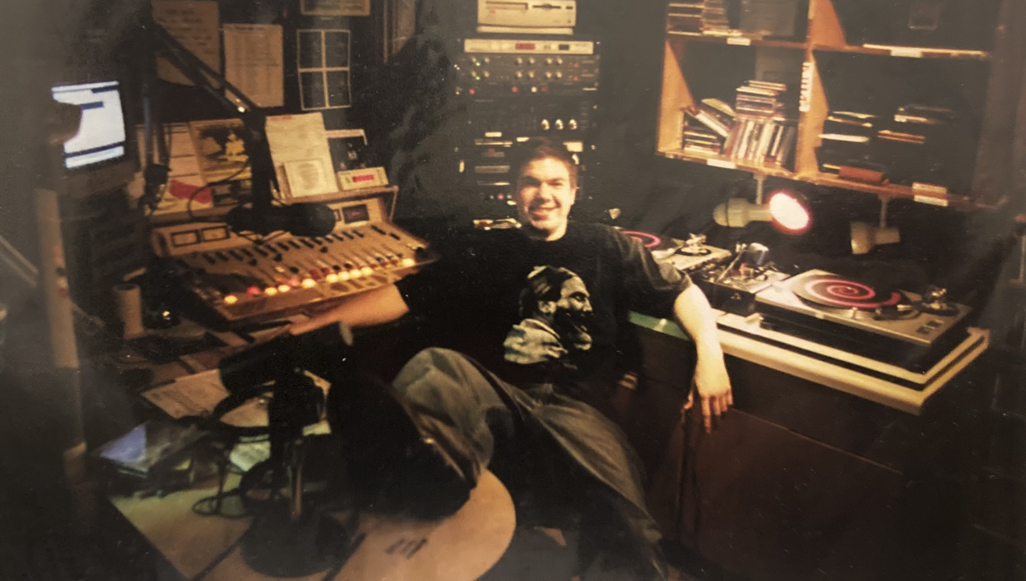 Miles Bonny at KJHK 90.7fm in Lawrence, Kansas. This image appeared in an issue of CMJ Magazine.